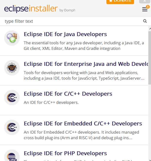 우리는 맨 위 Ecplise IDE for java Developers를 선택할 겁니다! 이렇게 하면 설치는 완료입니다!