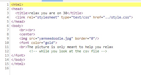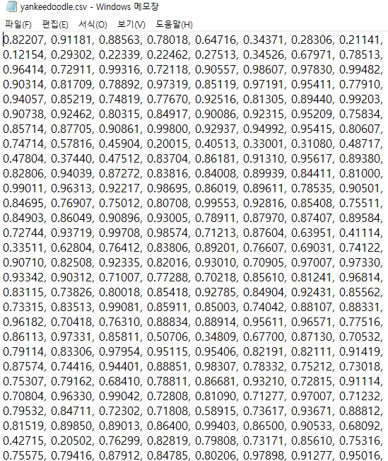 주석은 csv(comma separated values)을 확인하라고 되어있다. yankeedoodle.csv를 다운로드 하자.